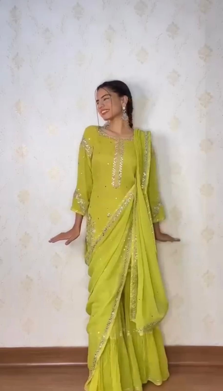 Looking for this same colour beautiful Designer Suit On havy Faux Georgette febric With Thred & 9MM Sequnce work and Sharar On also Faux Georgette febric and Dupatta on also Faux Georgette Febric With Thred & 9MM Sequnce work.